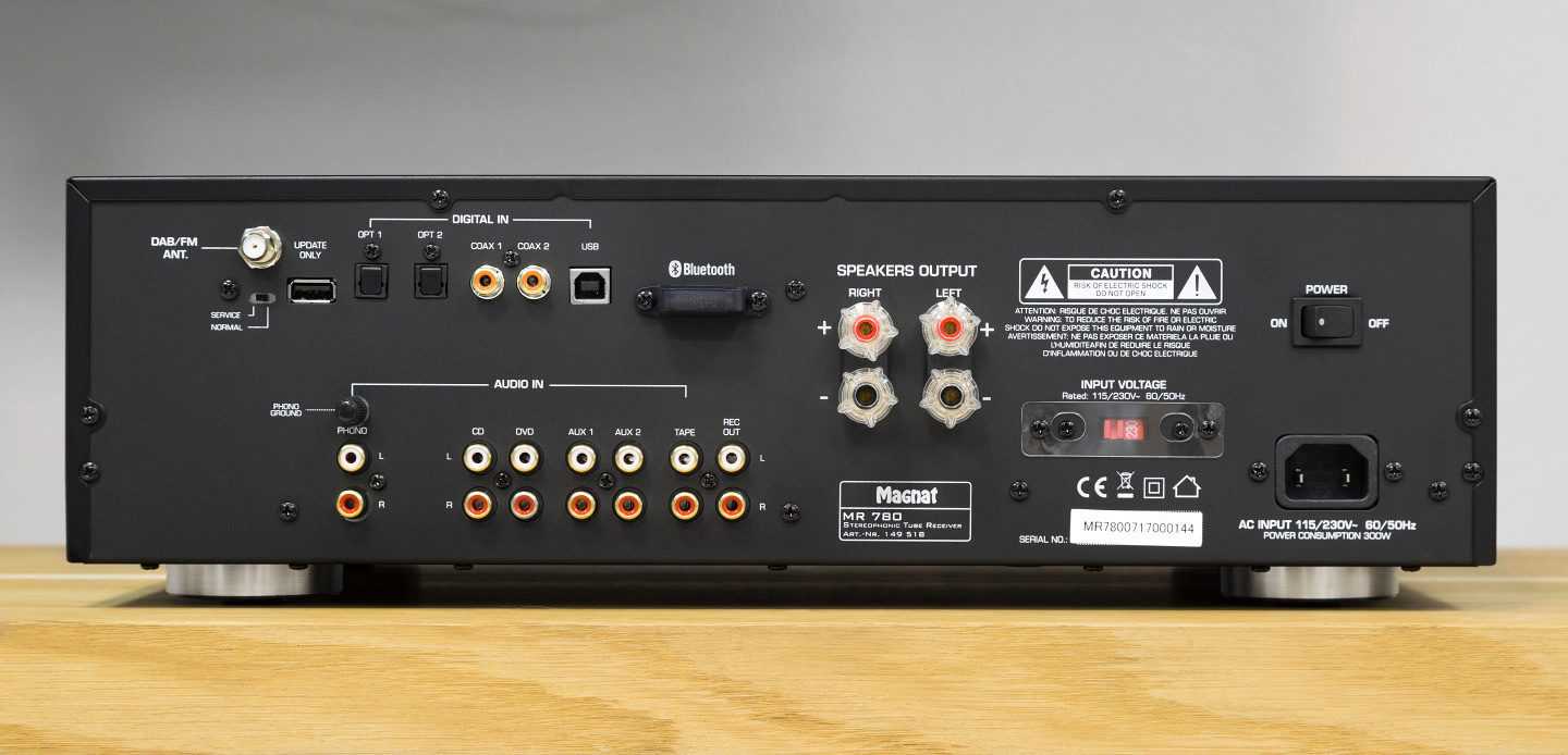 В вопросе функциональности стереоресивер Magnat MR 780 является полной противоположностью CD-проигрывателю, поскольку может практически все, за исключением, конечно же, воспроизведения компакт-дисков. Итак, загибайте пальцы: интегрированный усилитель с ламповым предварительным каскадом, фонокорректор, ЦАП с USB и SPDIF входами, FM/DAB тюнер, Bluetooth-приемник версии 4.0 с aptX, усилитель для наушников и даже трехполосный эквалайзер! Впечатляет? А теперь обо всем этом более подробно.