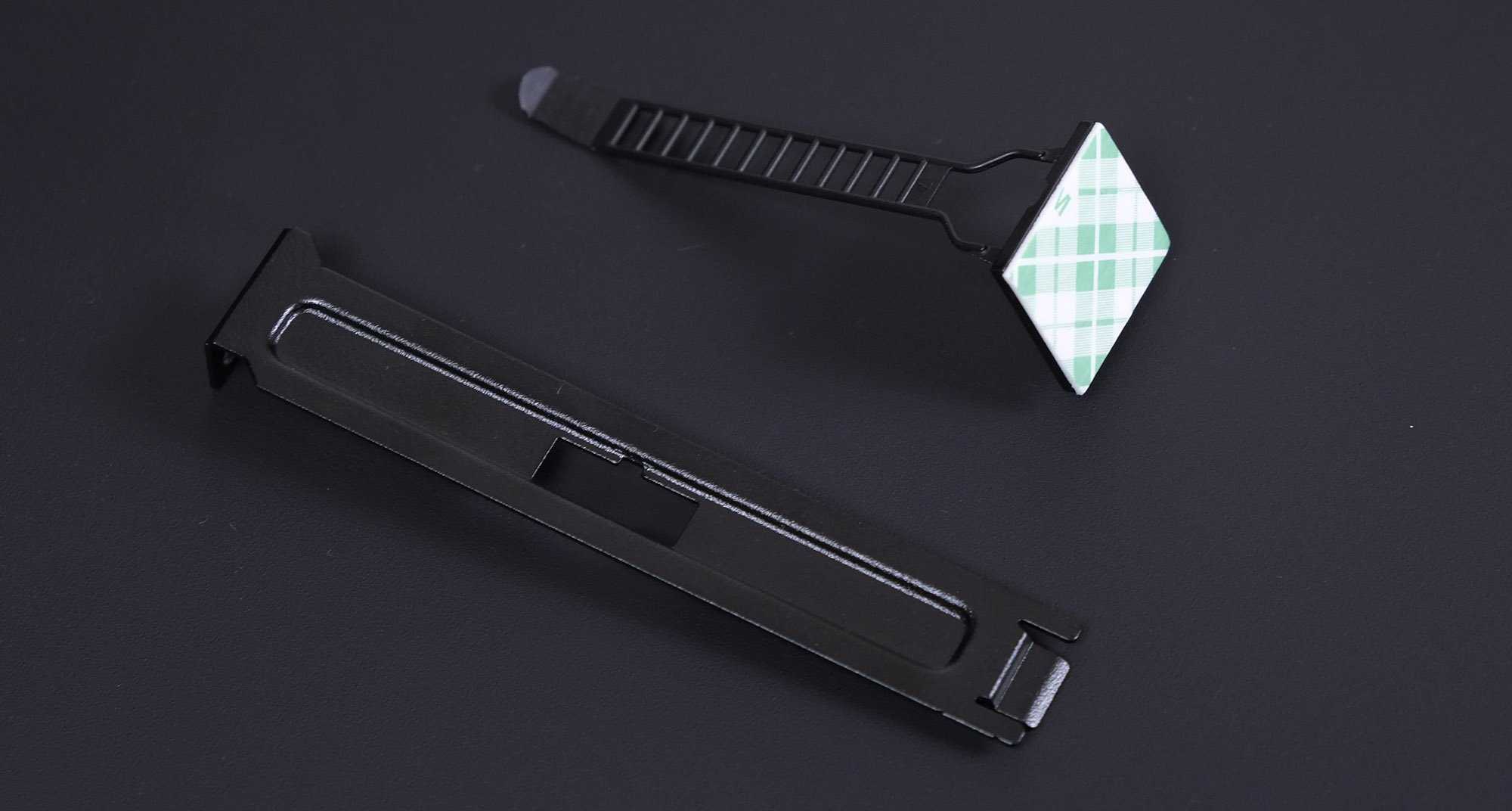 Для прокладки кабелей в комплекте есть всего один фиксатор, который можно приклеить, например, к обратной стороне столешницы.