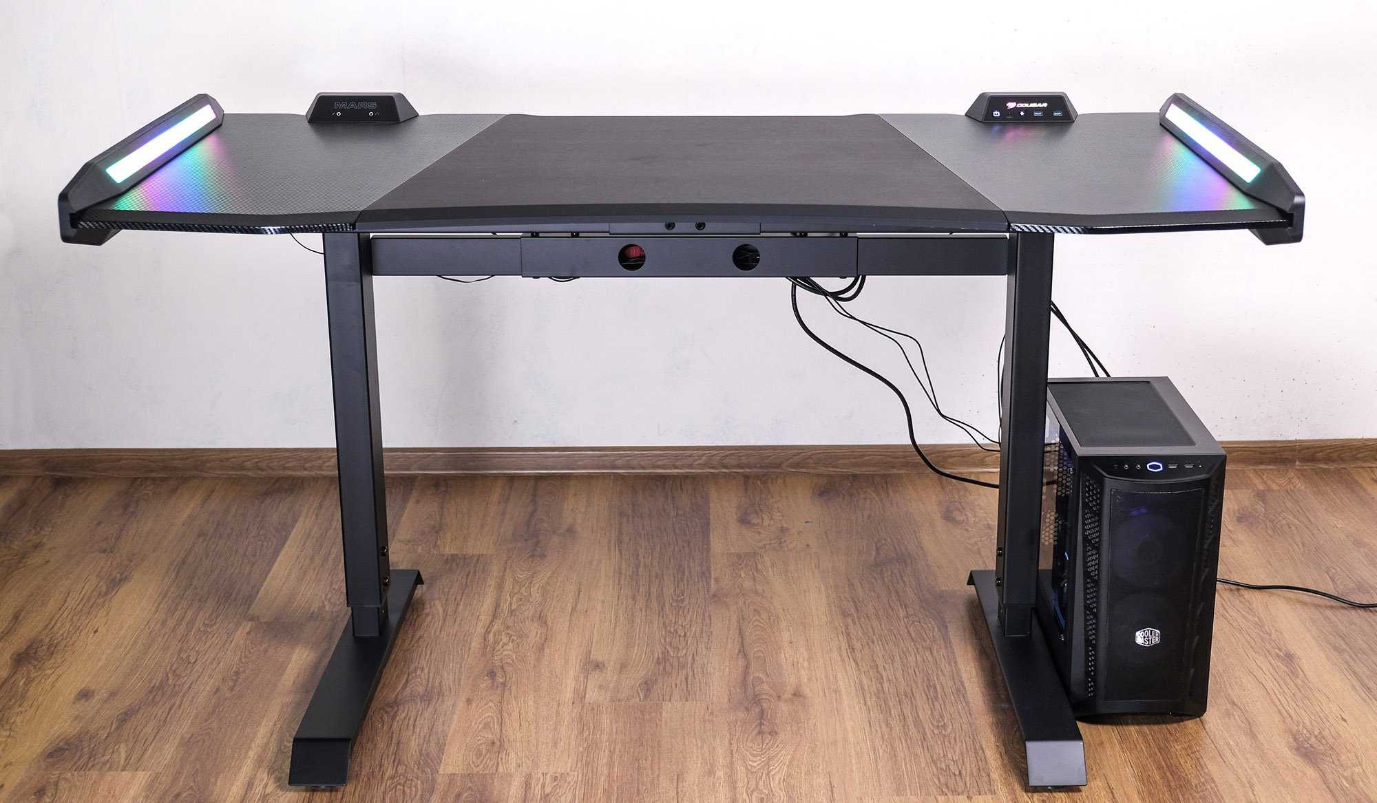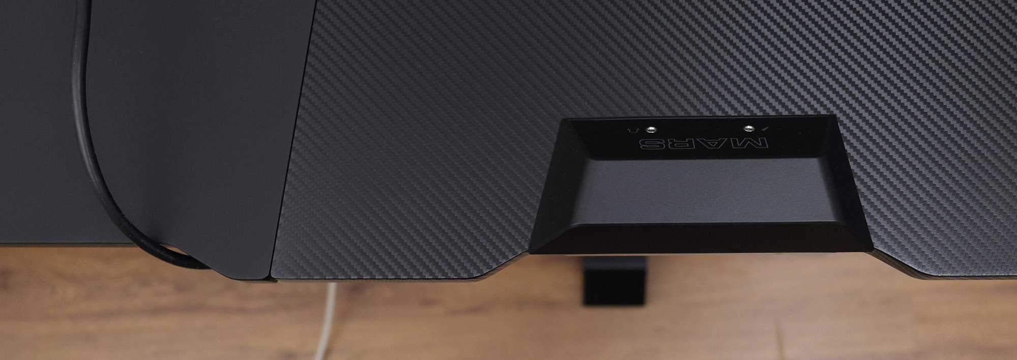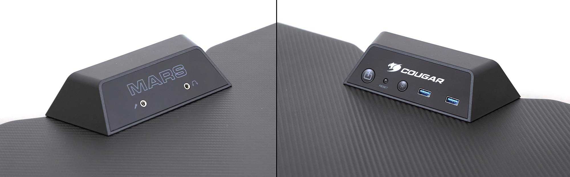 COUGAR MARS отличается от простых столов тем, что фактически может составлять единое целое с вашим игровым ПК или ноутбуком. С блока управления стола можно включать и перезагружать компьютер, управлять подсветкой. Также есть два разъёма USB 3.0, которые всегда будут под рукой, и раздельные 3,5 мм аудиовыходы на наушники и микрофон.