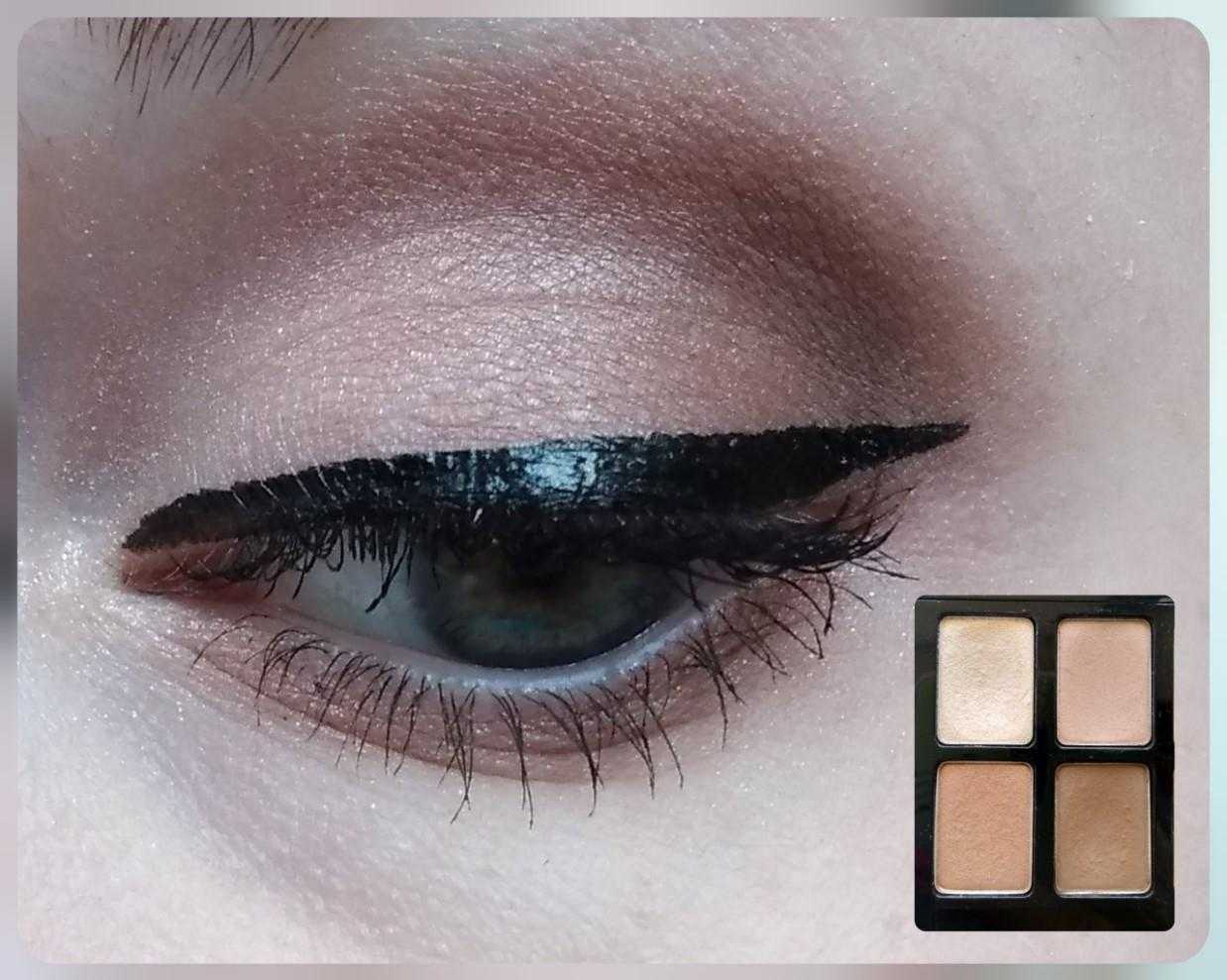 - «Белым золотом» покрыть все подвижное веко, «корицей» подчеркнуть складку. Называется «на свидание», обеспечивает выразительность взгляда при внешней скромности и незаметности макияжа.
