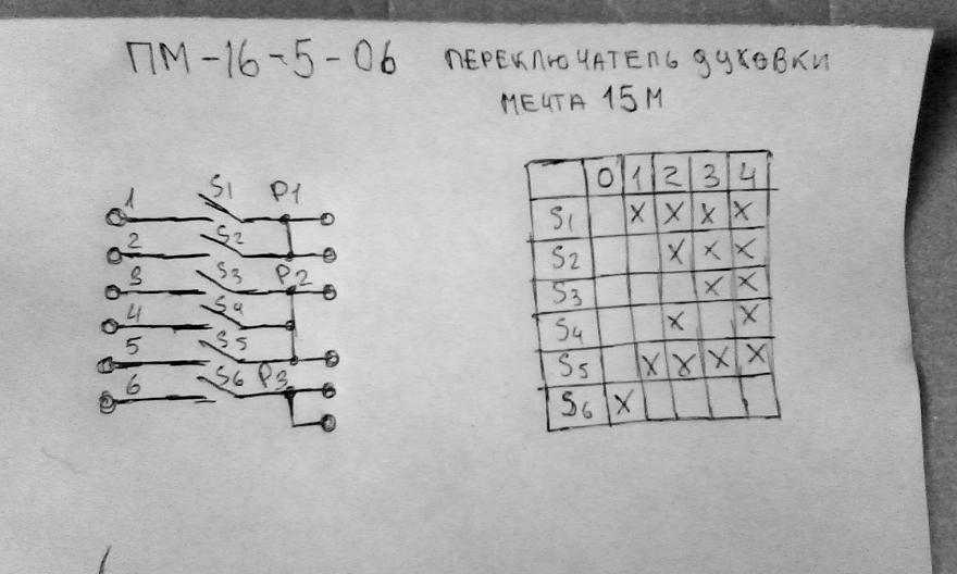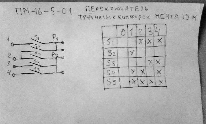 Схема контактных групп переключателя мощности ПМ-16-5-01
