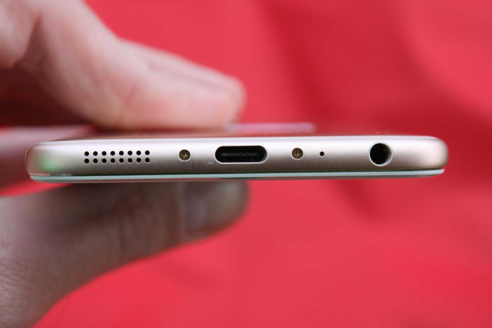 Снизу динамик, разъём для наушников, порт USB Type-C, микрофон.