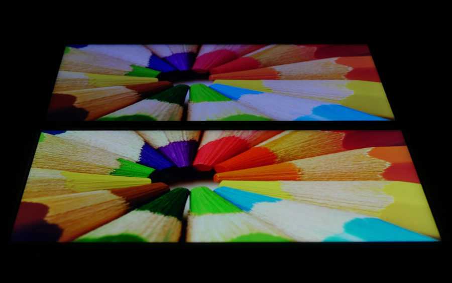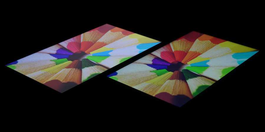 Диагональ дисплея составляет 5,5″, а разрешение равно 1920 х 1080 точек. Как следствие, плотность пикселей на дюйм достигает значения 401 ppi – неплохо. Мы долго всматривались в панель и так и не нашли, к чему можно прикопаться. Цветопередача естественная и в меру насыщенная, углы обзора широкие, яркости в обе стороны достаточно, а баланс белого отрегулирован нейтрально (если вам попался образец с холодным или теплым дисплеем, то в настройках можно изменить температуру на свой вкус). Сенсорный слой поддерживает до 10 касаний, присутствует неплохое олеофобное покрытие.