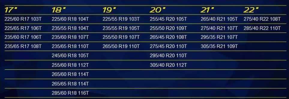 Предназначена для внедорожников и легкового транспорта. Подходит для сложных погодных условий. Гарантирует контроль над управлением и отсутствие скольжения по пути.