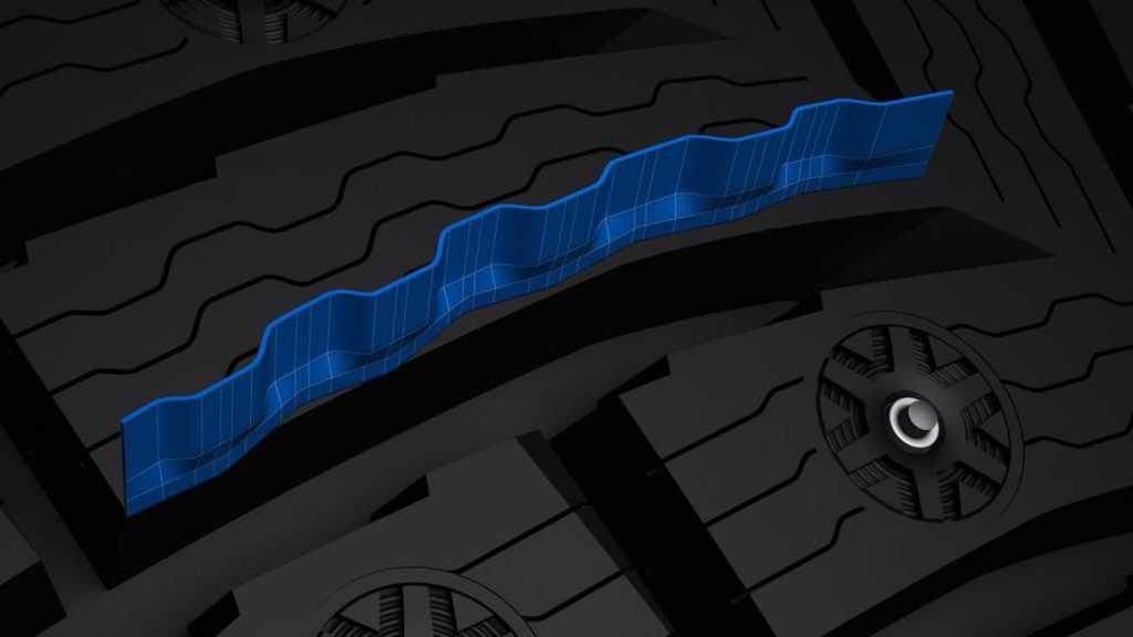 Разработан уникальный алгоритм размещения шипов, которые повышают сцепление с поверхностью. Это снижает шум и тормозной путь даже на очень скользких дорогах.