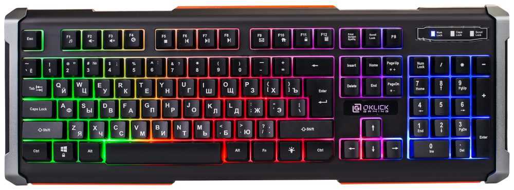 Можно купить клавиатуру с подсветкой для компьютера недорого. При этом она может выглядеть стильно и современно. Oklick 717G Black Death — игровой аксессуар, который можно подарить подростку и взрослому.