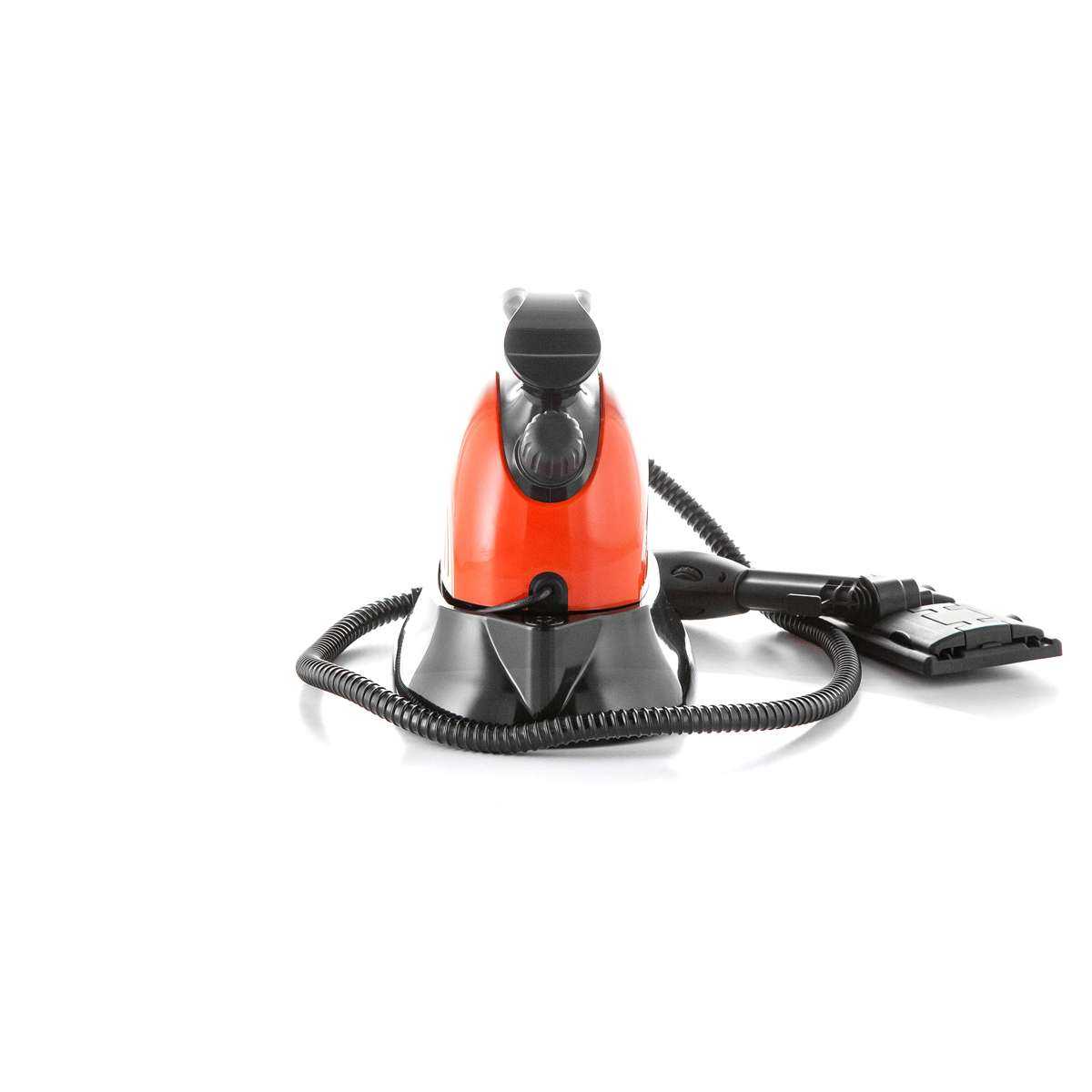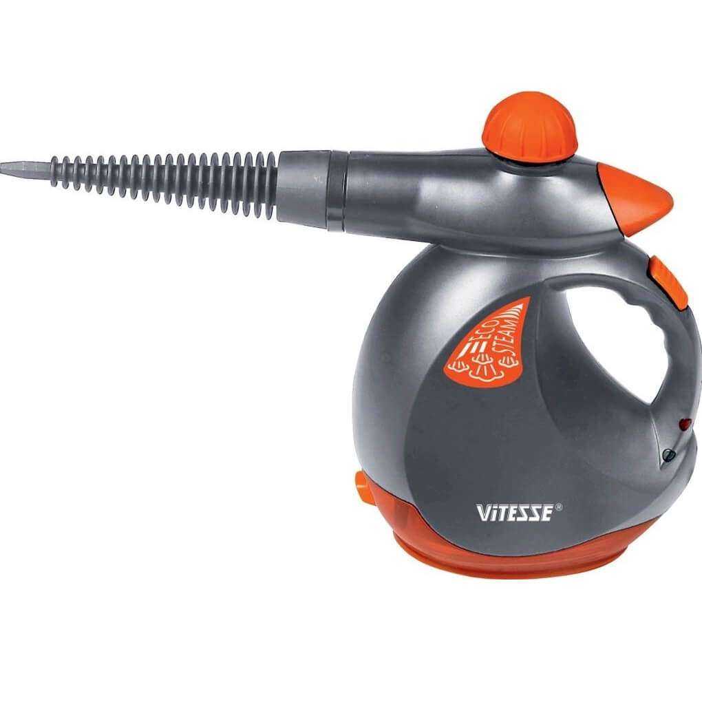 Отличается универсальностью применения – его можно использовать для очистки стеклянных, керамических поверхностей, изделий из металла, однако он подойдет для разглаживания одежды, то есть в качестве отпаривателя. Стоит такая продукция не слишком дорого. Работает от сети 220 В, позволяет получить пар с максимальной температурой 135 градусов. В минуту способен выдать вплоть до 17 граммов пара. Готов к работе через три минуты после включения в сеть. Номинально заявленная мощность составляет 1200 Вт, однако для того, чтобы добиться такого показателя, придется разогреть прибор на полную и пользоваться им непрерывно в течение 10-15 минут. Средняя мощность устройства несколько ниже – она составляет около 1 кВт, но и этого вполне достаточно для того, чтобы избавиться от устойчивых загрязнений. Вместимость резервуара для воды составляет почти пол литра.