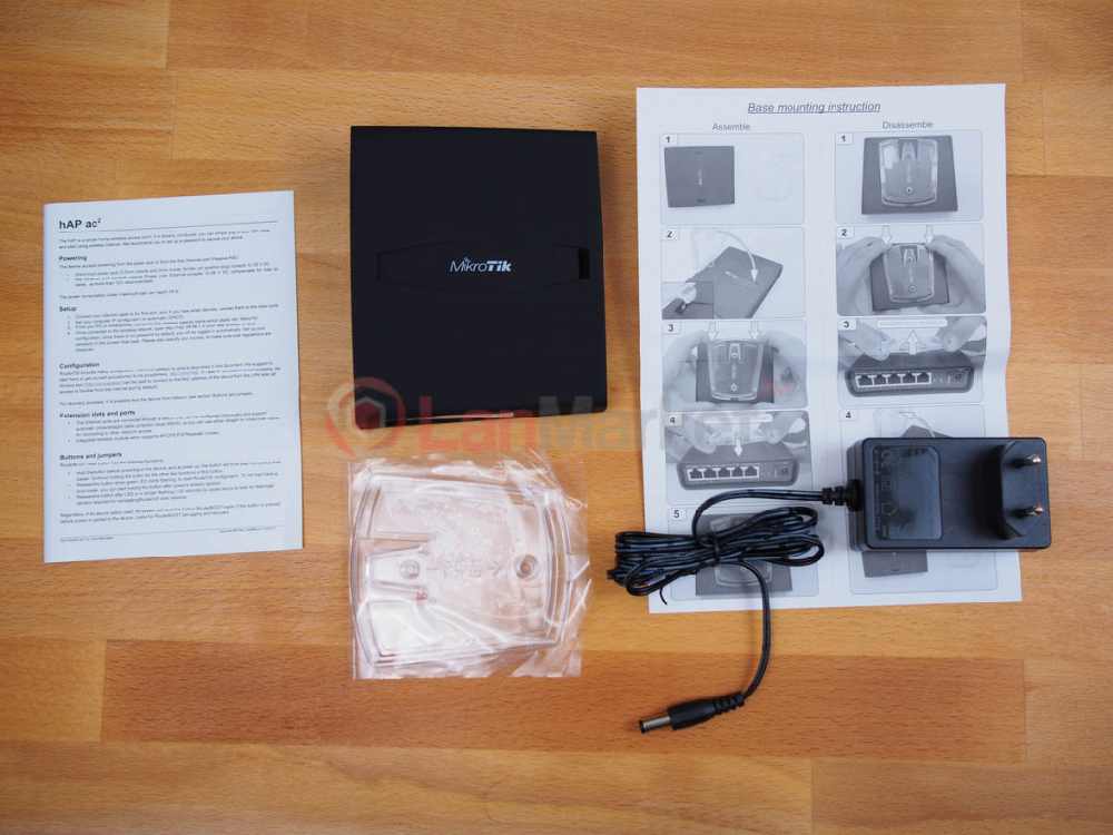 «Комплект поставки маршрутизатора MikroTik hAP ac2:1. Маршрутизатор2. Блок питания (разъем jack) 24 В, 0.8 А3. Съёмная подставка4. Комплект креплений для настенного монтажа5. Краткое руководство пользователя.»