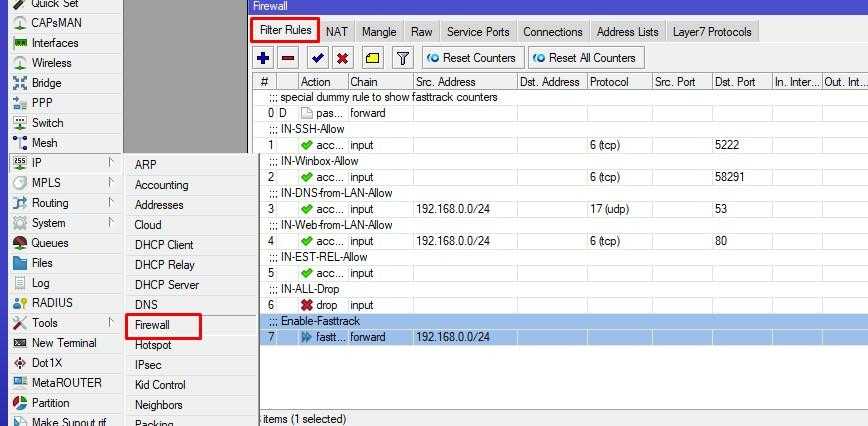 | Маршрутизация (routing) | 25 правил в IP Firewall Filter | 56,8 | 689,8 | 59,6 | 244,1 | 60,5 | 31,0 |