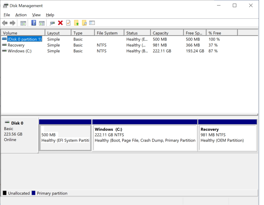 В программе управления дисками показан только SSD 240 Гб, поскольку в этой модели нет eMMC флэш-памяти.