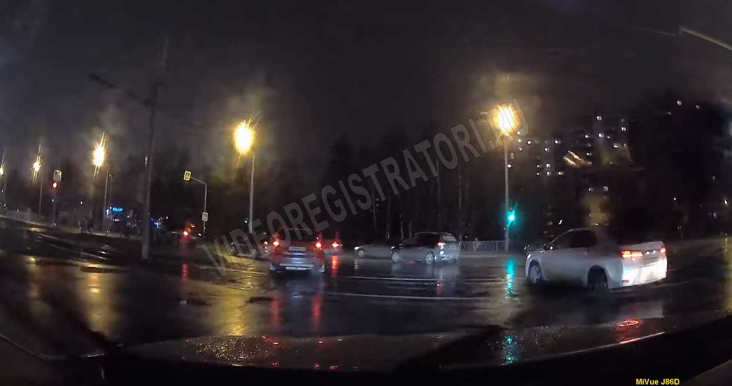 Запись в ночное время достойная. Света фар хватает, чтобы различить знаки, номера и дорожную разметку. На трассе в темное время обочина видна плохо.