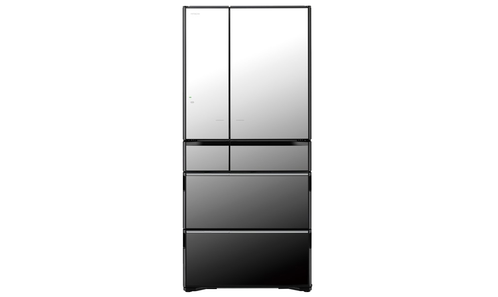 Открывает наш обзор супердорогой холодильник Hitachi R-X 690 GU X с конструкцией French Door, которая включает наличие 6 дверей, представлен в благородном цвете «зеркальный кристалл». Система тройной фильтрации воздуха Triple Deodorant Filter исключает вероятность появления запахов, а светодиодная лампа ярко освещает внутреннее отделение. Для экономии электроэнергии холодильник с классом А++ также обладает специальной технологией Frost Recycling Cooling. Высокоточный и высоконадежный инверторный компрессор позволяет точно отрегулировать мощность охлаждения от высокой до низкой. Оригинальная технология Hitachi Dual Fan Cooling: два вентилятора расположены отдельно друг от друга для морозильного и холодильного отделения, что обеспечивает снижение энергопотребления и оптимальное охлаждение больших объемов продуктов даже при температуре окружающей среды до +60 градусов. 6 датчиков температуры в холодильном отделении и 3 датчика в морозильном отделении каждую минуту считывают информацию об изменении температуры в камерах для создания наиболее оптимальных условий охлаждения.