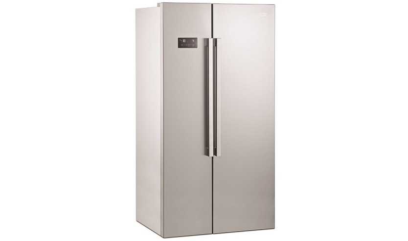 Двухкамерный холодильник Side by Side белого цвета. Достаточно крупный: 91x72x182 см. Объем морозильника, расположенного сбоку, 190 л, холодильника – 353 л. Наличие нулевой зоны. Возможность быстрой заморозки. Индикация звуком при росте температуры внутри аппарата. Цена: 52 тыс. рублей.