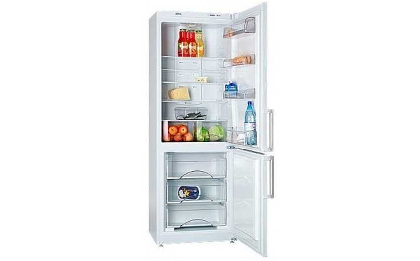 - ATLANT ХМ 4624-101. Модель капельного холодильника, но уже цена значительно ниже. Уровень шума – 39 дБ. Очень компактный, но при этом вместительный. Имеет красивую LED-подсветку, а ручки расположены по бокам, что очень удобно при размещении. Есть небольшой недостаток – эта модель имеет общий регулятор температуры на две камеры. А также может выйти из строя при перепадах напряжения, поэтому рекомендуется использовать стабилизатор.