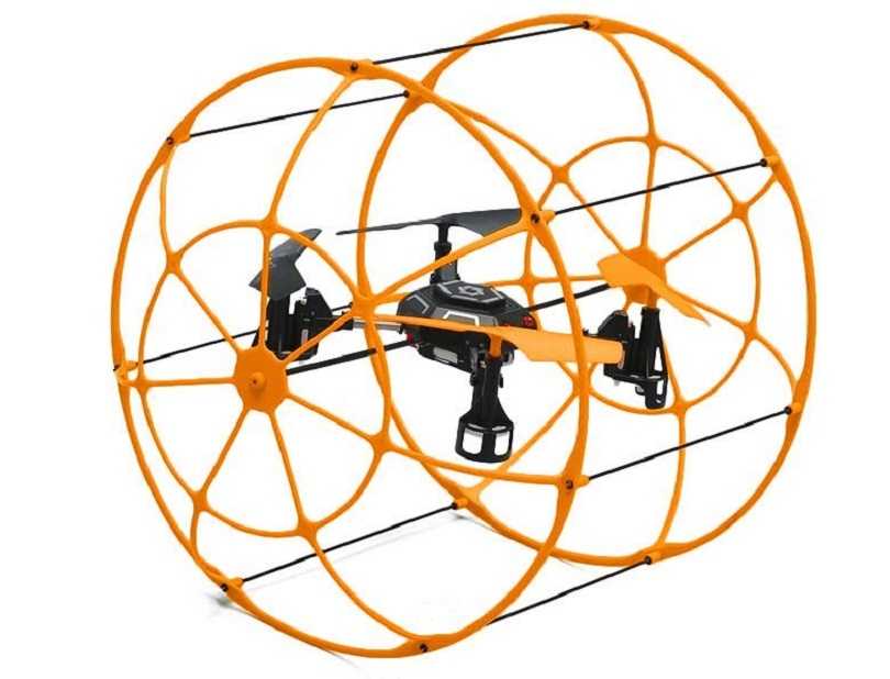 Куда более действенна сферическая защита, которая обрамляет устройство со всех сторон. В качестве примера можно привести модель квадрокоптера UDI U828. Благодаря идущей в комплекте защитной раме этот дрон может не только падать и натыкаться на различные предметы без ущерба для себя, отталкиваясь от них, но и кататься по полу, стенам и потолку.