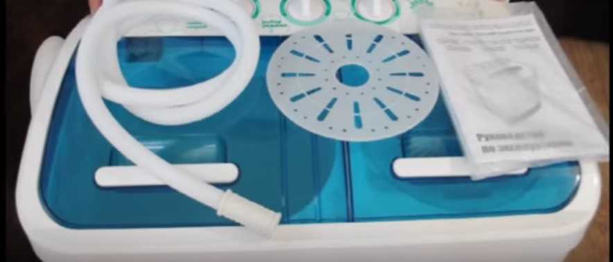 - Удобство и простота эксплуатации с визуально понятной системой управления: запутаться в большом количестве режимов и функций не получится, поскольку их мало, а длительность стирки не превышает 30 минут. Это значительно меньше, чем цикл в автоматических аппаратах.