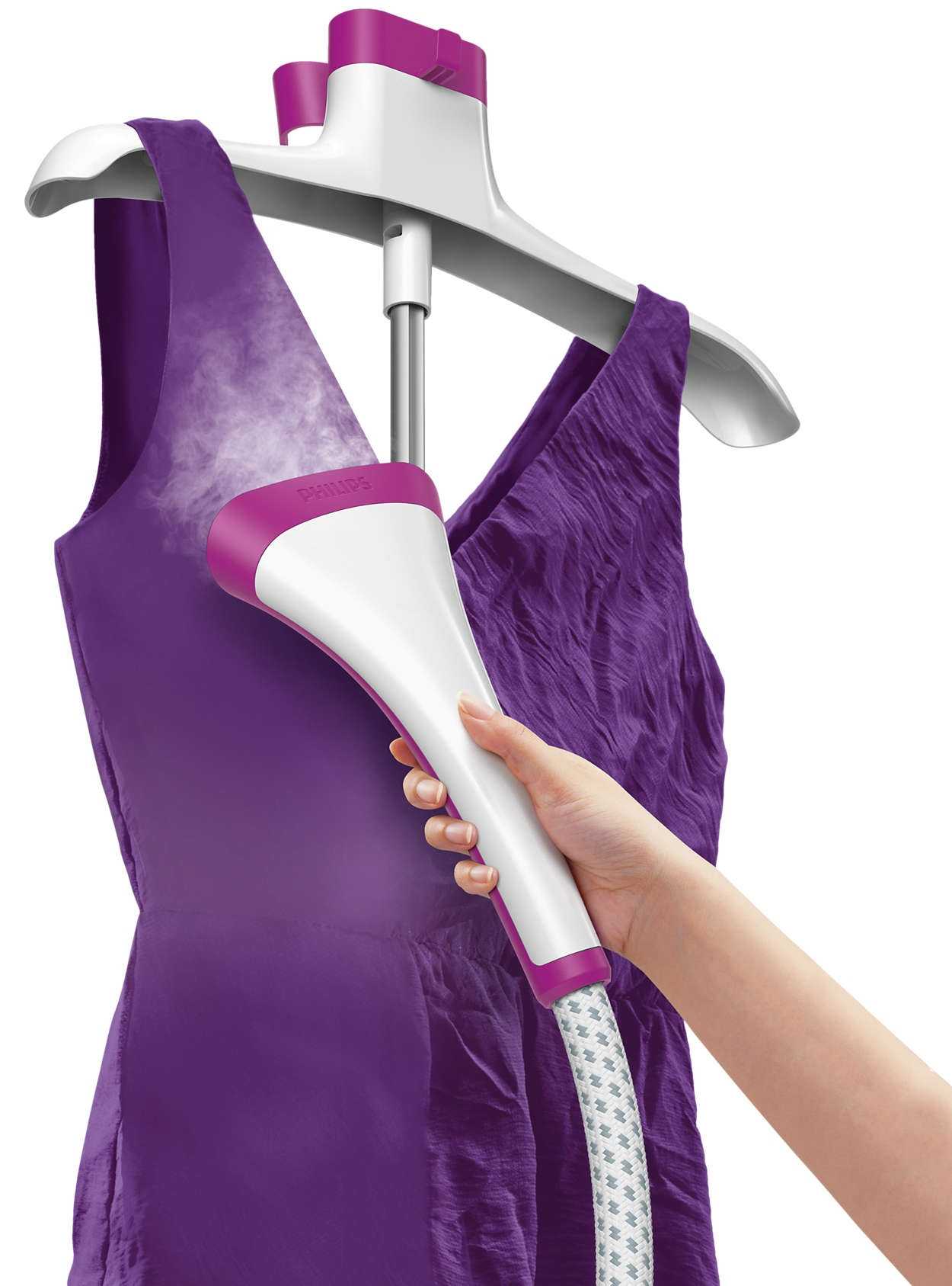 - Для удаления пятен, потёртостей и поднятия ворса рекомендуем использовать насадку-щётку. Горячий пар удаляет микробов и дезинфицирует, а также выполняет дезодорирующую функцию. Вещи, выглаженные отпаривателем, выглядят свежими и опрятными.