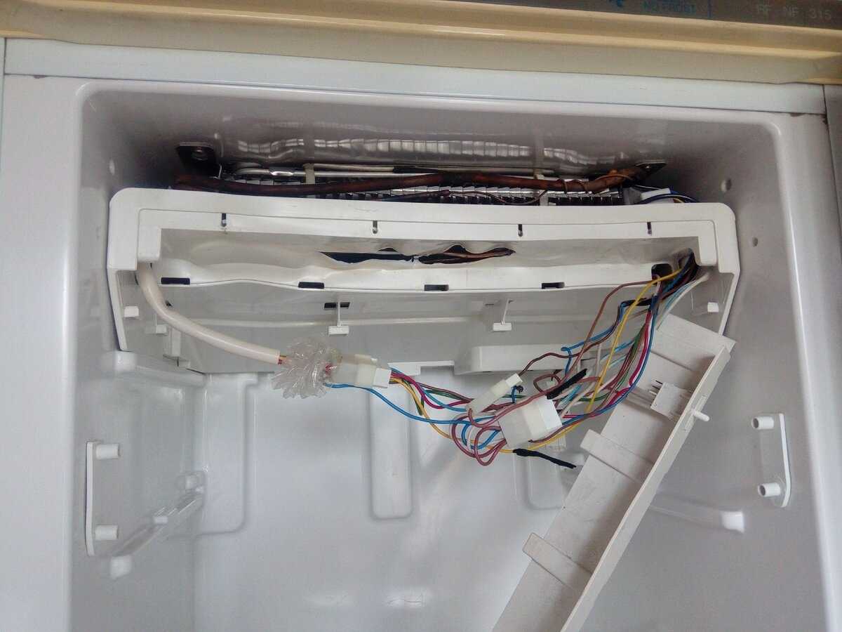 Если в холодильниках ноу фрост течет вода из морозилки, дело может быть в поломке нагревателя испарителя. В этом случае внутри морозильной камеры намерзает лед, который препятствует плотному прилеганию дверцы и тает.