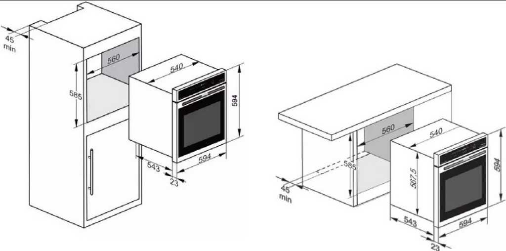 - Расстояние между боковыми стенками ниши и духовки должно составлять не менее 0,5 см с каждой стороны.